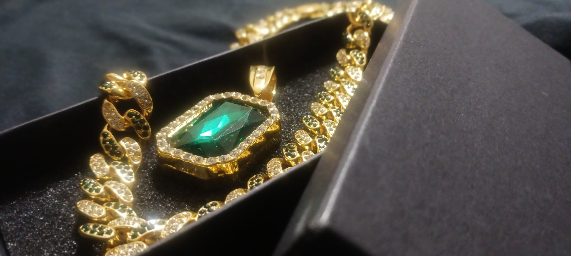 Gold plated Iced Out Green & sliver Necklace with Green Stone Pendent